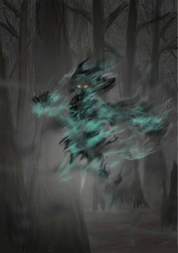 This cursed creature will wander the night eternally seeking vengeance. These etheric beings can only kill once their victims are rendered helpless. Given their draining touch, this offers scant comfort to those who encounter them.